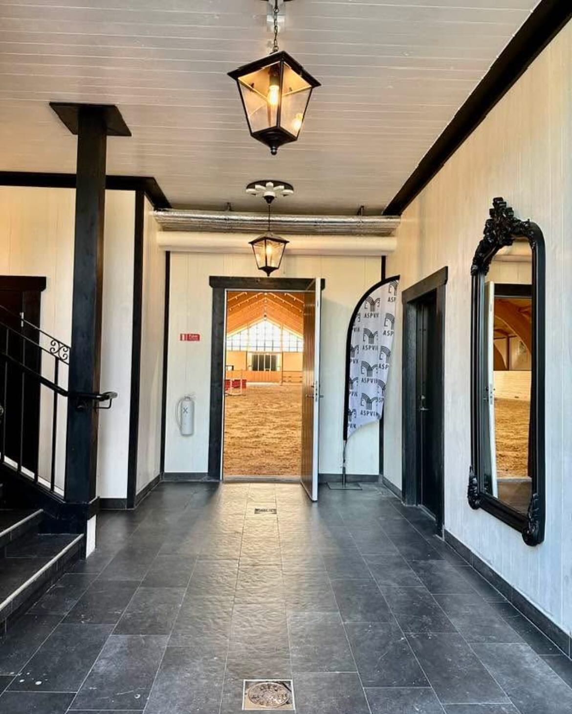 Stora luftiga boxar, nära till slingor och skogsrundor samt förstås ett toppmodernt ridhus med fibersandsunderlag.